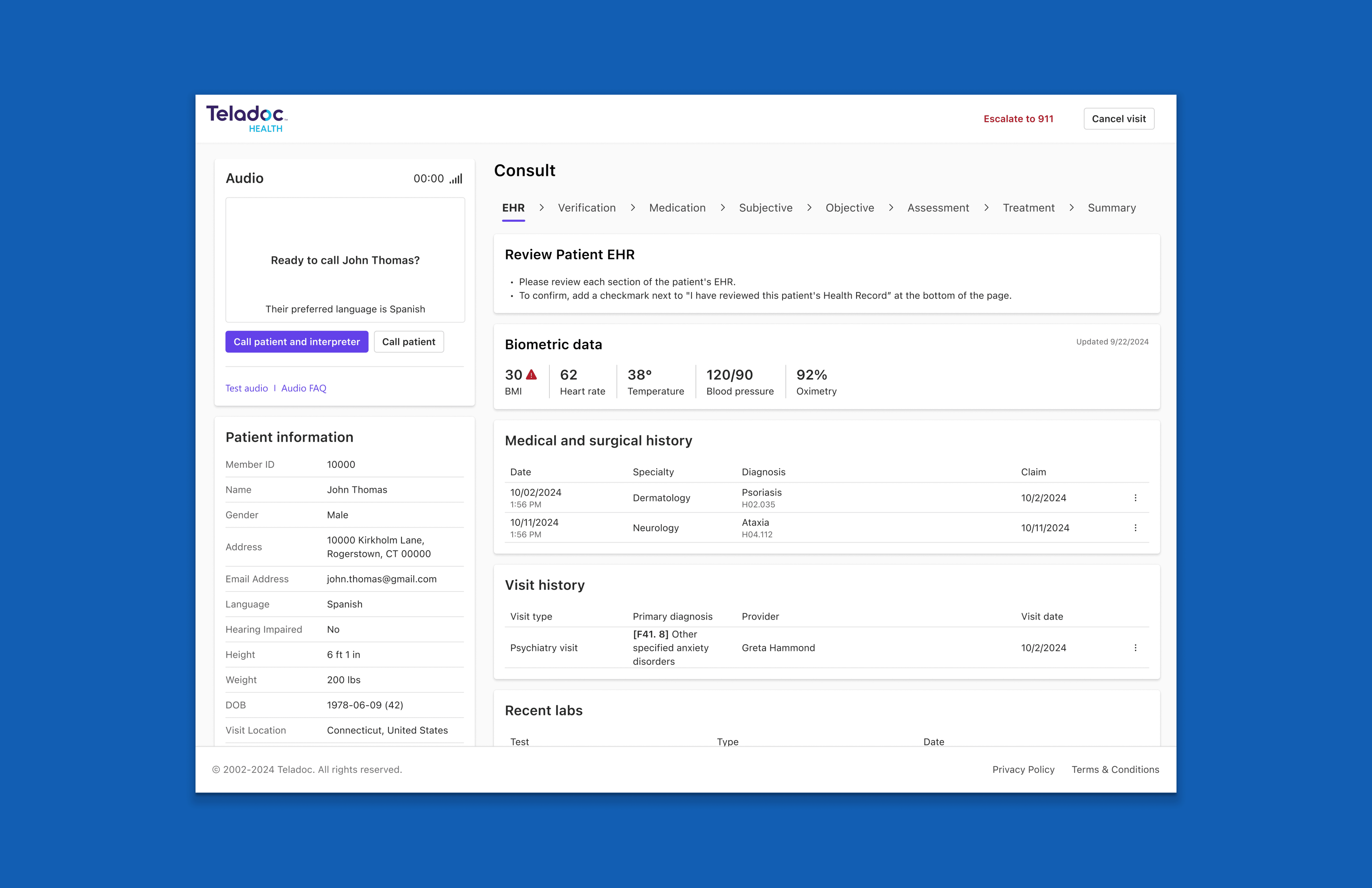 Problem - Teladoc is enhancing online visit services for non-English speaking patients by partnering with a third-party interpretation service.